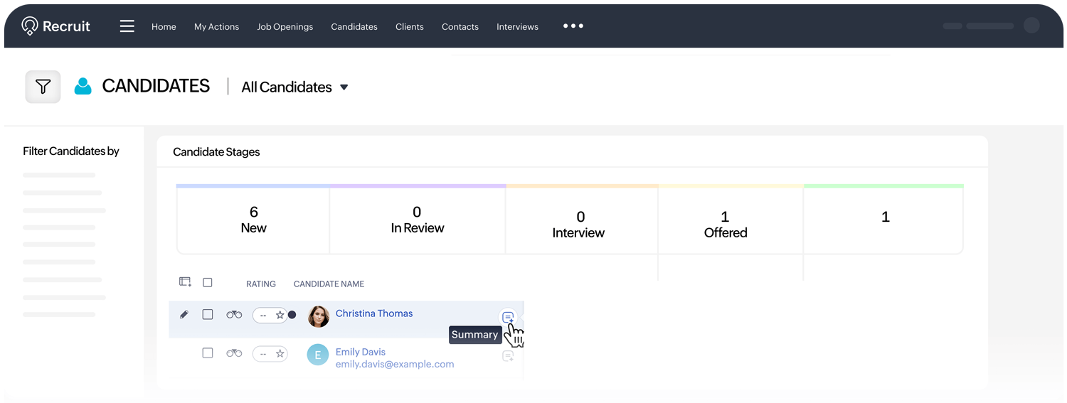 Recruitment teams are turning to tools like Zoho Recruit to address these challenges. The process simplifies how HR teams search and evaluate information about candidates.