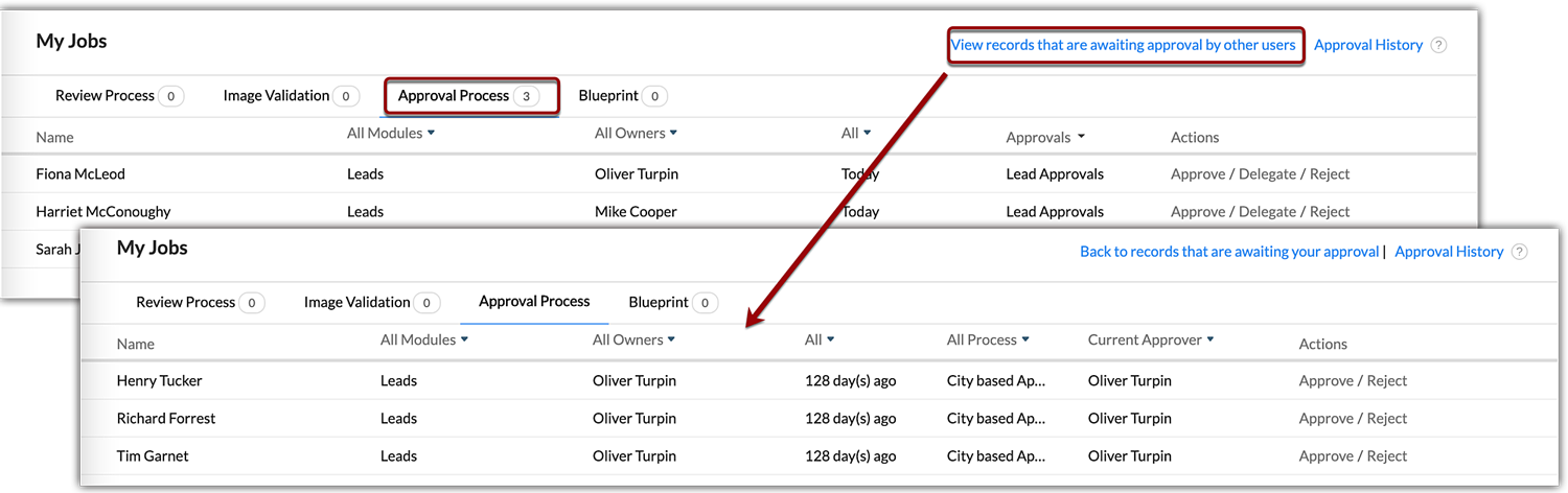 Approvers review and respond directly inside the CRM. Others can see the status at any time, which may be: